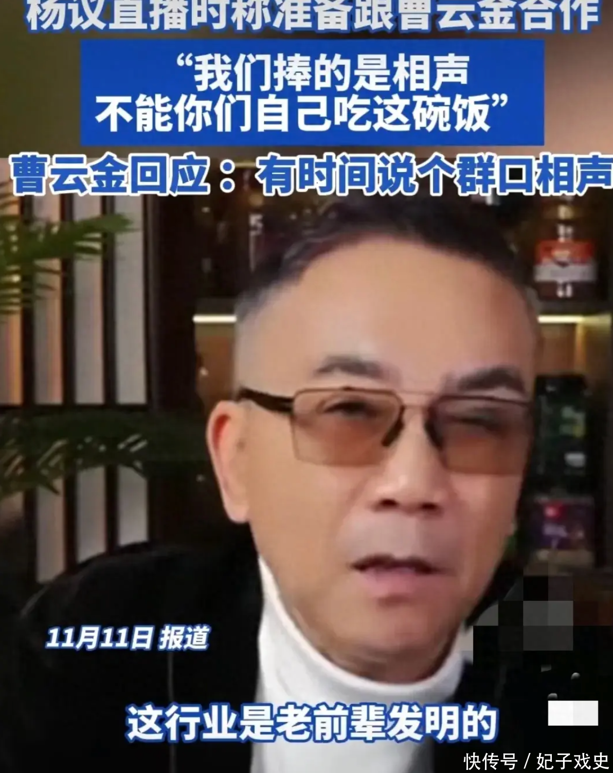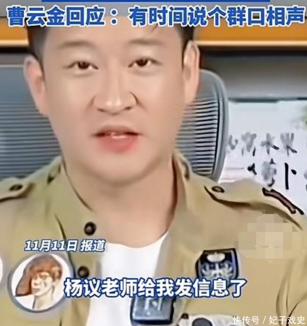 曹云金这边也在直播间回复了,他说:“杨议憨厚给我发了信息,让我有空抽个时分我们互助说段相声,我说好啊,把老何他们也叫来,我们来总共群口相声。”