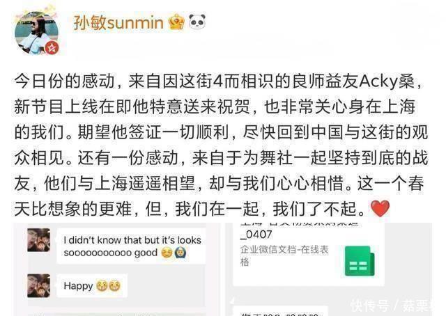 孙敏说因为《这!即是街舞》第四季,意志了ACKY,良师良一又。当今新节目上线了,ACKY有利奉上祝愿和聊天施行节目中,孙敏向ACKY先容《了不得!舞社》,这是一档面向女生的嘻哈综艺。同期也期待ACKY早日归来,早日与《这!即是街舞》不雅众碰面。